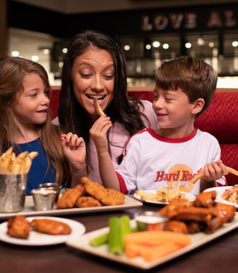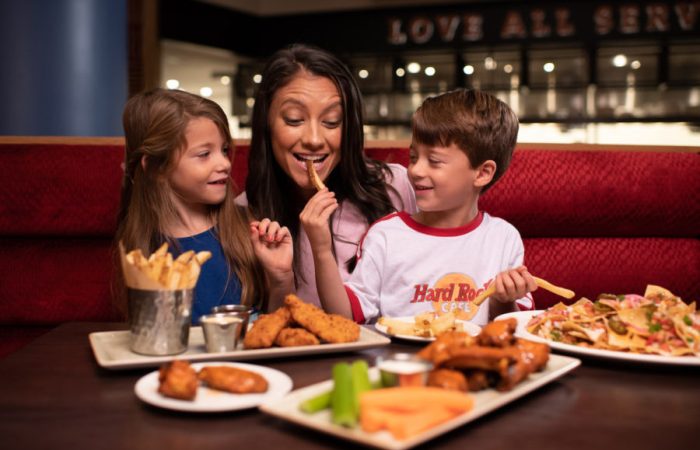 Οι επισκέπτες έχουν ακόμα τη δυνατότητα να απολαύσουν τις επιλογές από τον θρυλικό Hard Rock κατάλογο φαγητού που περιλαμβάνει ορεκτικά όπως το Jumbo Combo, τα Nachos, δροσερές σαλάτες, αλλά και τα απολαυστικά Legendary Burgers. Ένα γεύμα στο Hard Rock Cafe Athens προσφέρει πραγματικά μια μοναδική εμπειρια γεύσεων και Hard Rock service. Τα cocktails όπως και τα πιάτα που σερβίρονται, φτιάχνονται από φρέσκα υλικά αναδεικνύοντας τη συνολική αυθεντικότητα που αποπνέει το Hard Rock Cafe.