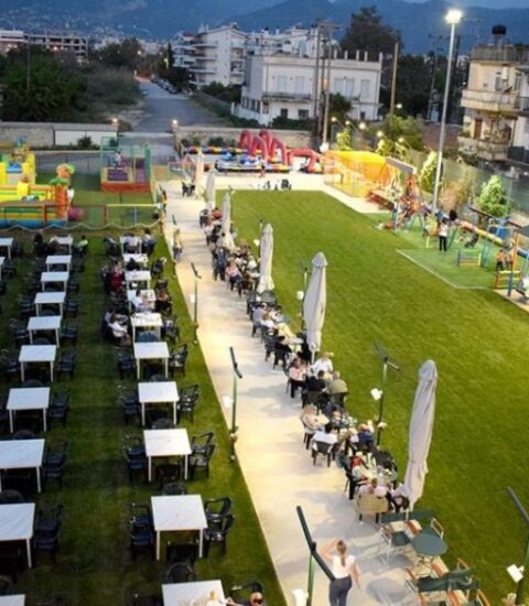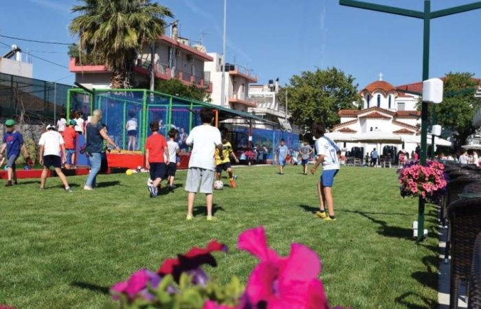 Τις βραδιές των σημαντικών αθλητικών γεγονότων, η γιγαντοοθόνη της «Αλέας» προβάλλει τους αγώνες στην «αντρική» γωνιά της πλατείας, ενώ οι μικροί μας φίλοι κάνουν τα πρώτα τους βήματα και βάζουν τα πρώτα τους… γκολ στον κήπο με το γκαζόν!