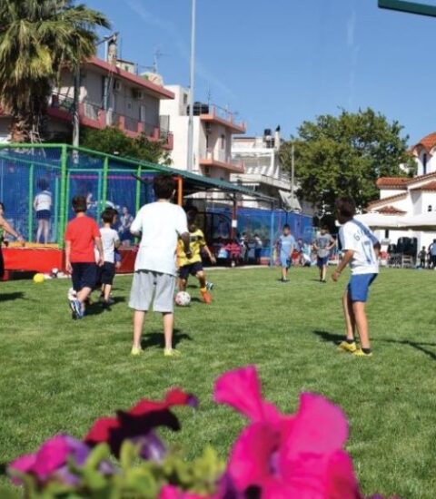 Τα παιδιά… παίζουν με απόλυτη ασφάλεια στον ειδικά διαμορφωμένο και πιστοποιημένο παιδότοπο, τα επιδαπέδια παιχνίδια (ping-pong, σκάκι κ.λπ), ή τους δύο σταθμούς play station, την παιδική χαρά και τον κήπο με το γκαζόν, πάντα με την επιτήρηση παιδαγωγού…